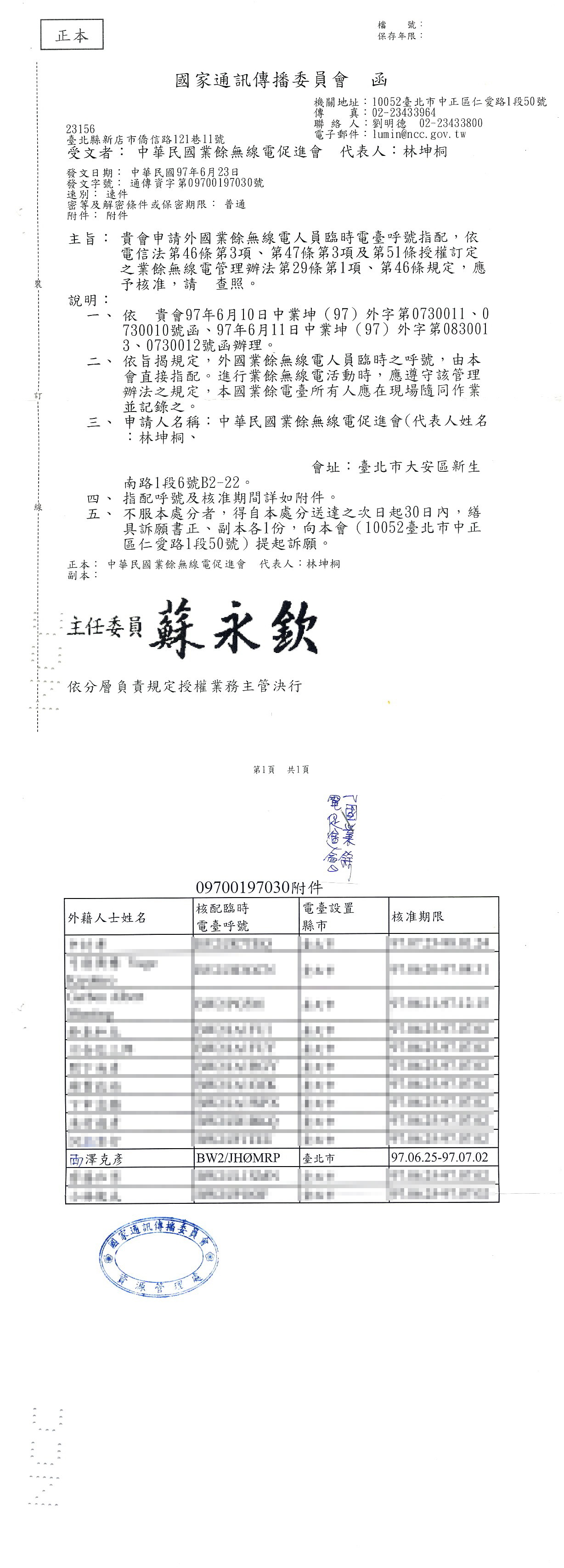 | The document of permissin to operate amateur radio in Taiwan. | QSL card |